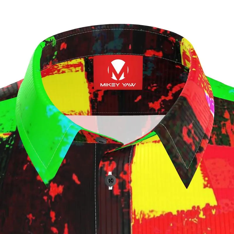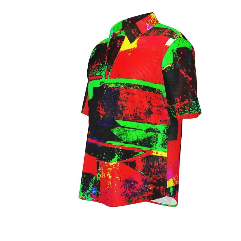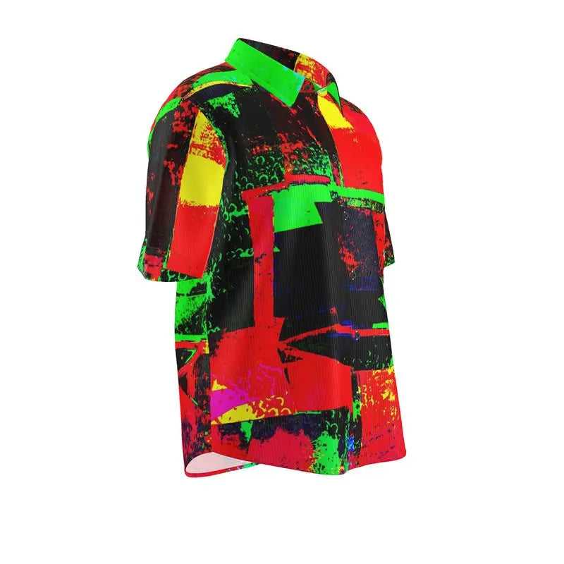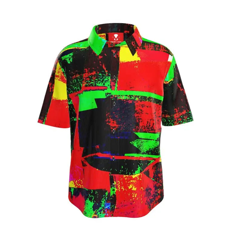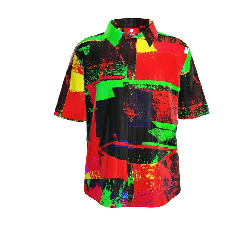 America, 2025: We’re all just simmering in chaos, waiting for the next disaster to boil over. The In The Frying Pan Button Down Short Sleeve Shirt captures this slow burn with an abstract swirl of yellow, red, green, and black, created from the image of boiling water—because let’s face it, we are all just ingredients in this overcooked political mess.