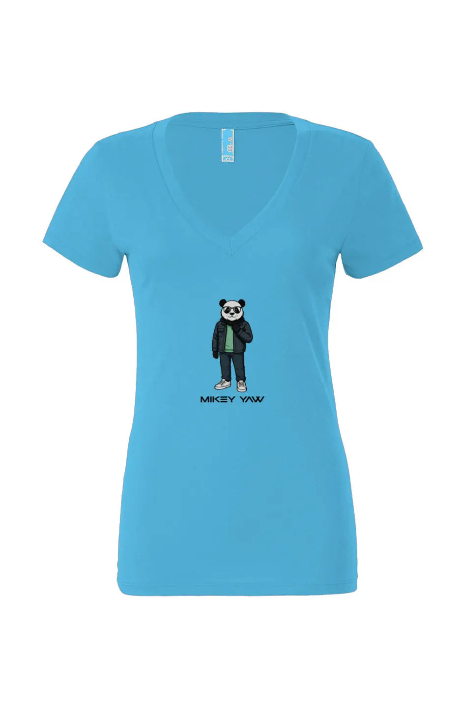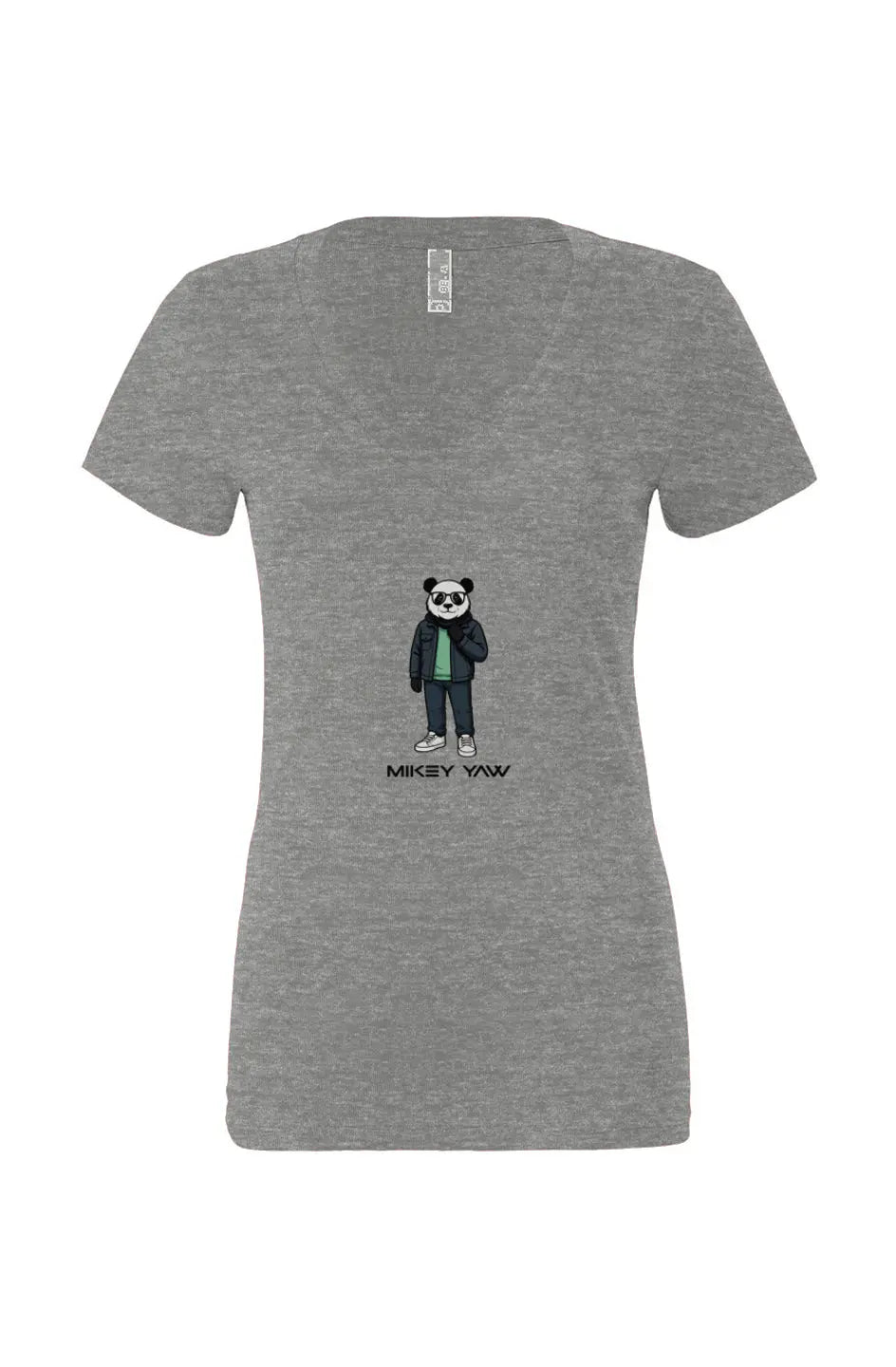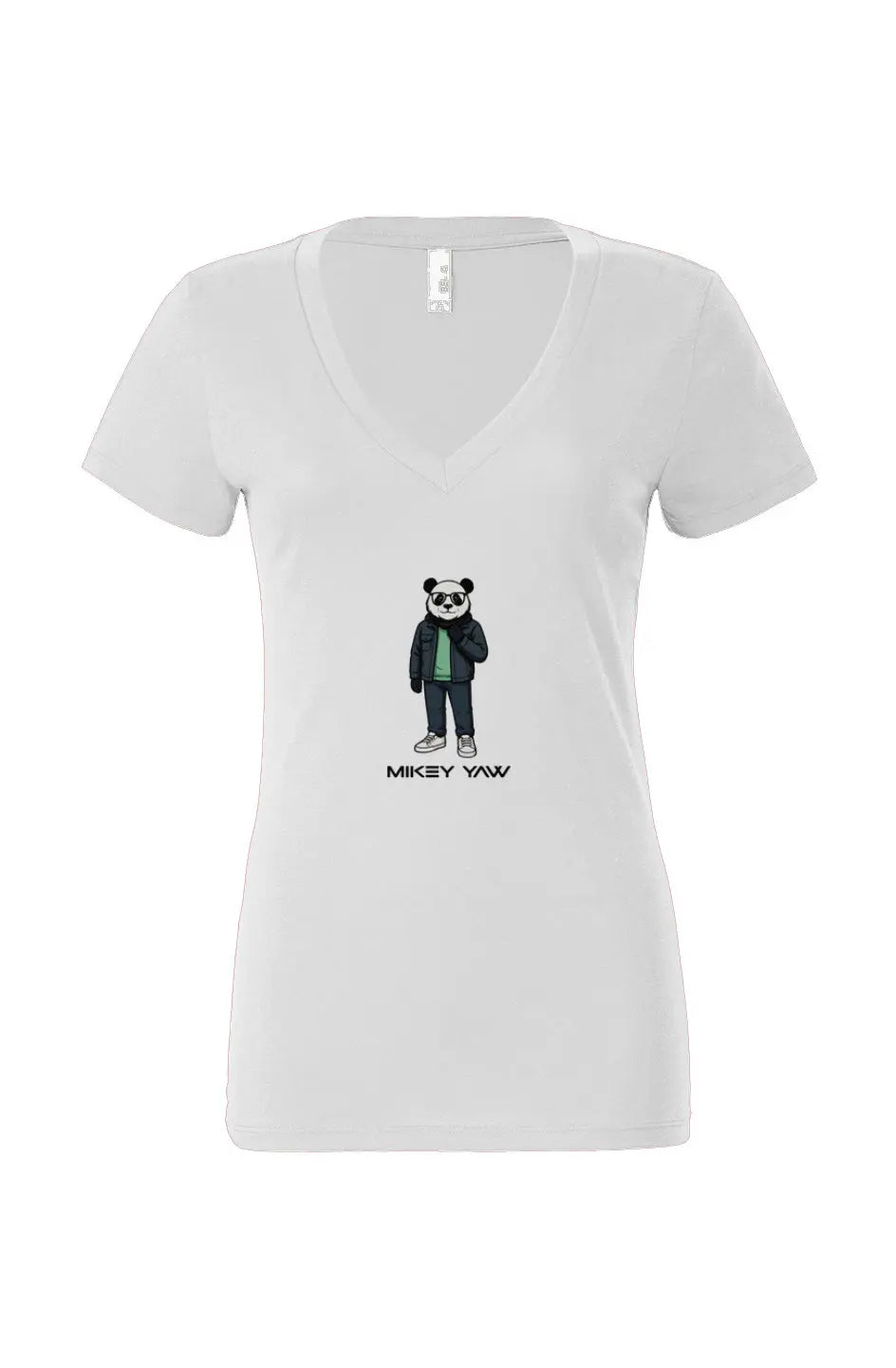 The Cool Panda Women’s Jersey Deep V-Neck T-Shirt is laid-back style with a wink. Featuring a cartoon panda wearing dark-rimmed glasses, this design is equal parts playful and streetwise — a nod to Mikey Yaw’s fun, colorful side. It’s artwear that doesn’t take itself too seriously, because sometimes the boldest move is just to keep it cool.