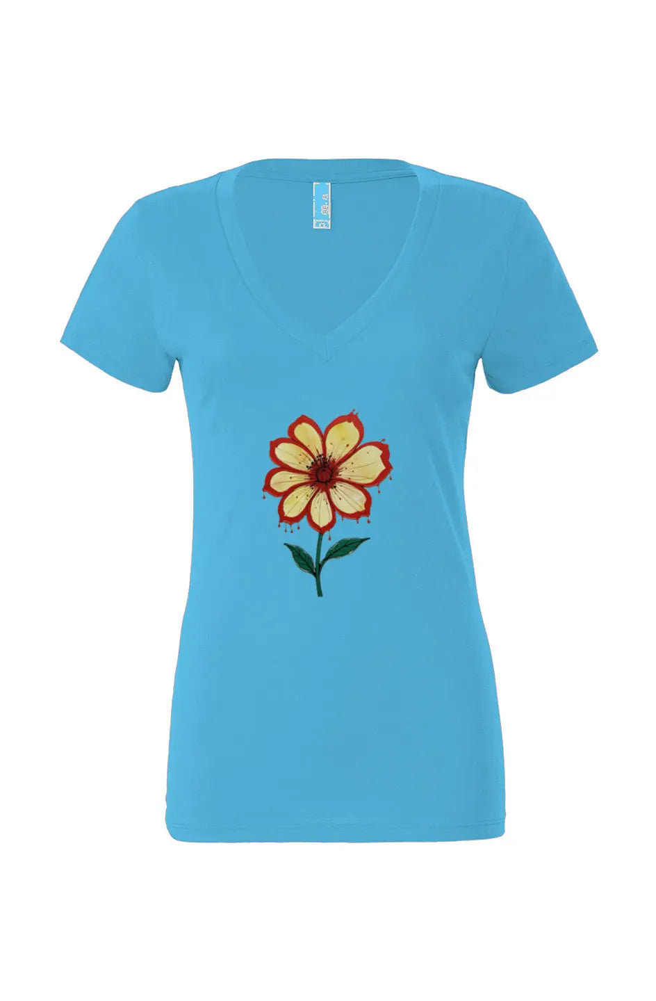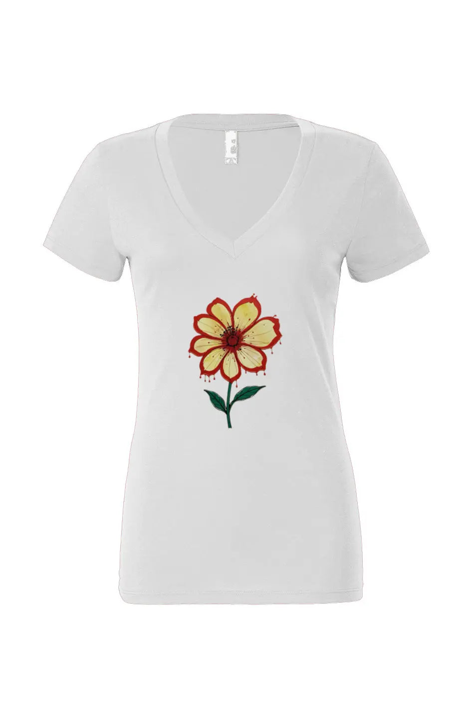 🌺 Dripping Flower Women’s Jersey Deep V-Neck T-Shirt