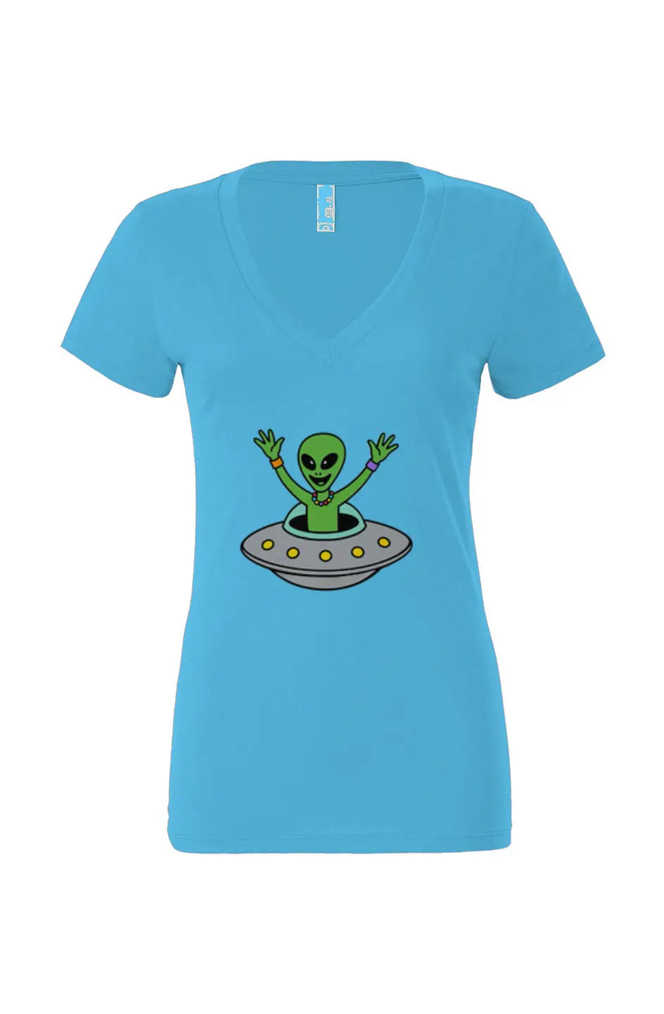 Partying Alien Women’s Jersey Deep V-Neck Tee