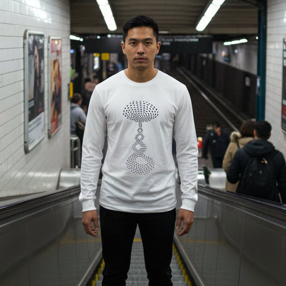 The Swarm Long Sleeve T-Shirt captures the hypnotic beauty of nature in motion. A swarm of black dots sweeps across the shirt in looping figure-eight patterns, echoing the infinity symbol. It’s a reminder that even the smallest creatures — like bees — carry infinite significance. Both delicate and powerful, the design calls us to pause and marvel at the rhythms of the natural world, while also recognizing how fragile our ecosystem is. Bees are threatened, yet their dance is still one of harmony and balance. This piece is artwear with a pulse — a celebration and a warning, stitched together in bold simplicity.