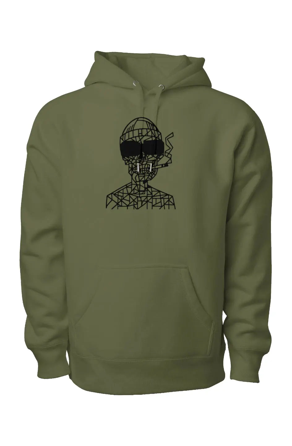 Smoking Skull with Sunglasses Premium Heavyweight Hooded Sweatshirt