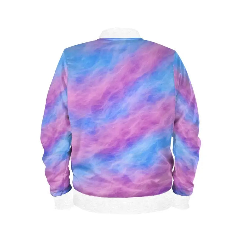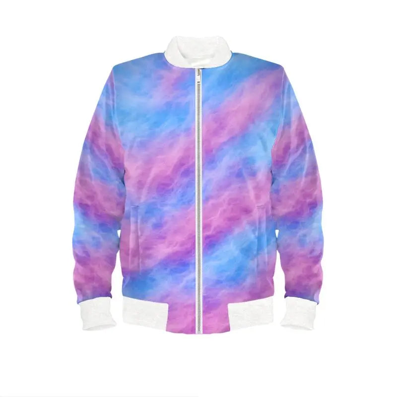 The Cotton Candy Premium Bomber Jacket is where nostalgia gets a modern remix. A swirl of pink and purple textures creates a pattern as light, sweet, and dreamy as the carnival treat itself. Finished with crisp white collar, cuffs, and hem, this bomber brings that perfect balance of playful color and streetwear polish. It’s bold without trying too hard, soft without losing edge — exactly the kind of jacket that makes you want to step out and turn heads.