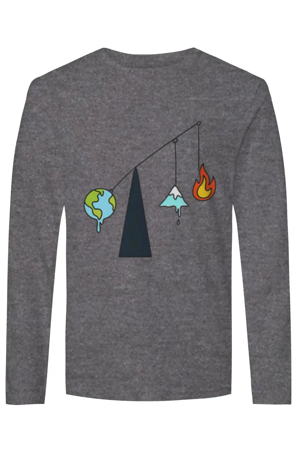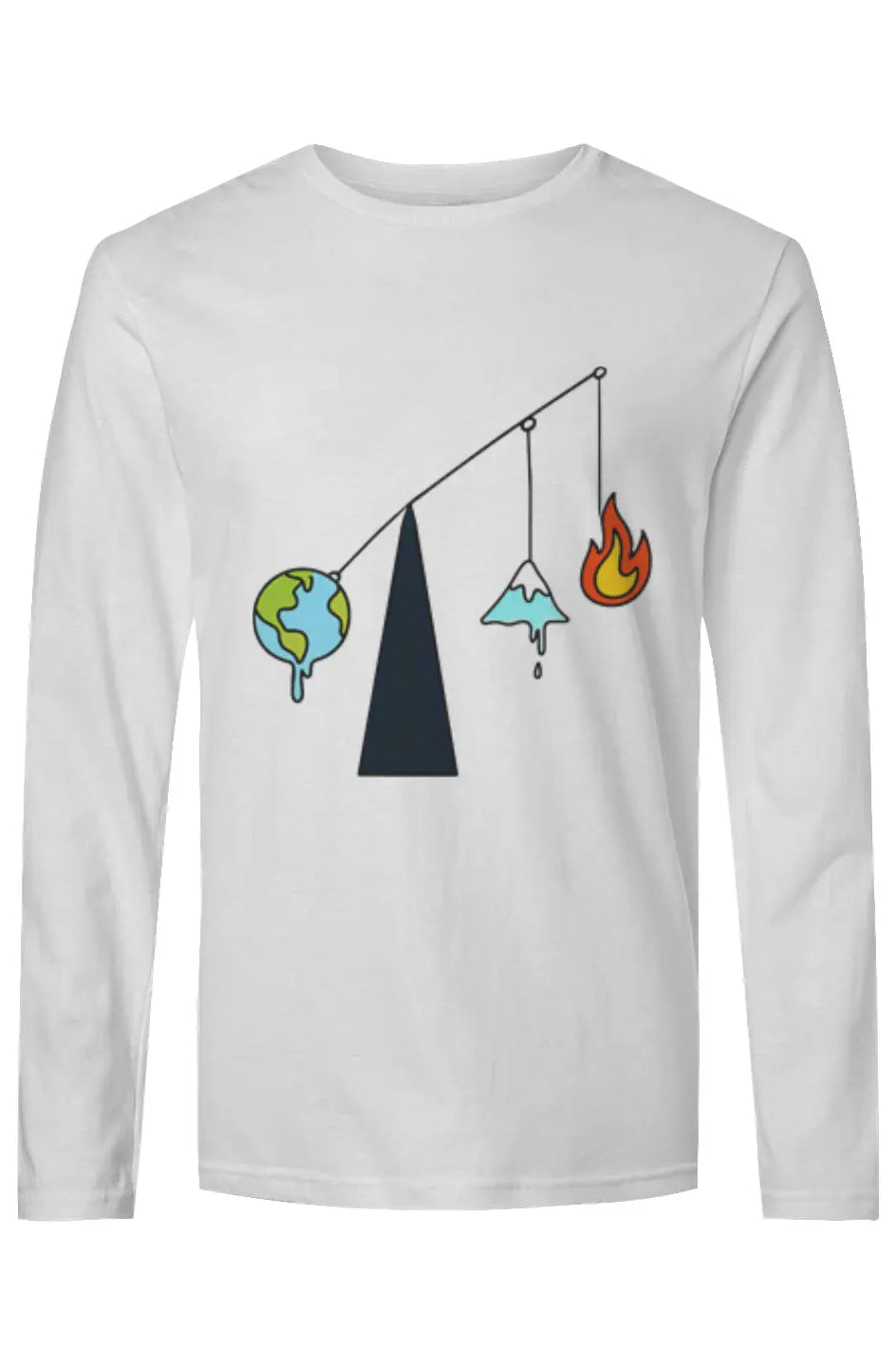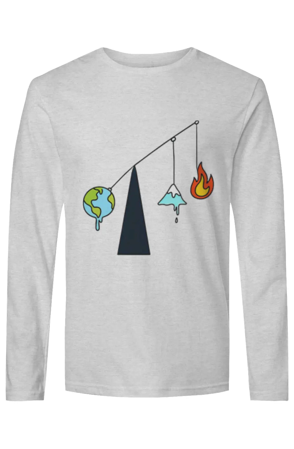 The Hanging in the Balance Long Sleeve T-Shirt turns the idea of a simple mobile into a stark reminder of what we’re up against. Balancing delicately on a center base, the mobile carries pieces of art that say it all: a melting earth, flames of fire, and glaciers dripping away into nothing. Each side pulls, just like the push and pull of our planet’s future. The balance is fragile — and if it tips, so does everything. This isn’t just streetwear, it’s a visual protest, a reminder that climate change isn’t abstract. It’s here. And what hangs in the balance is all of us.