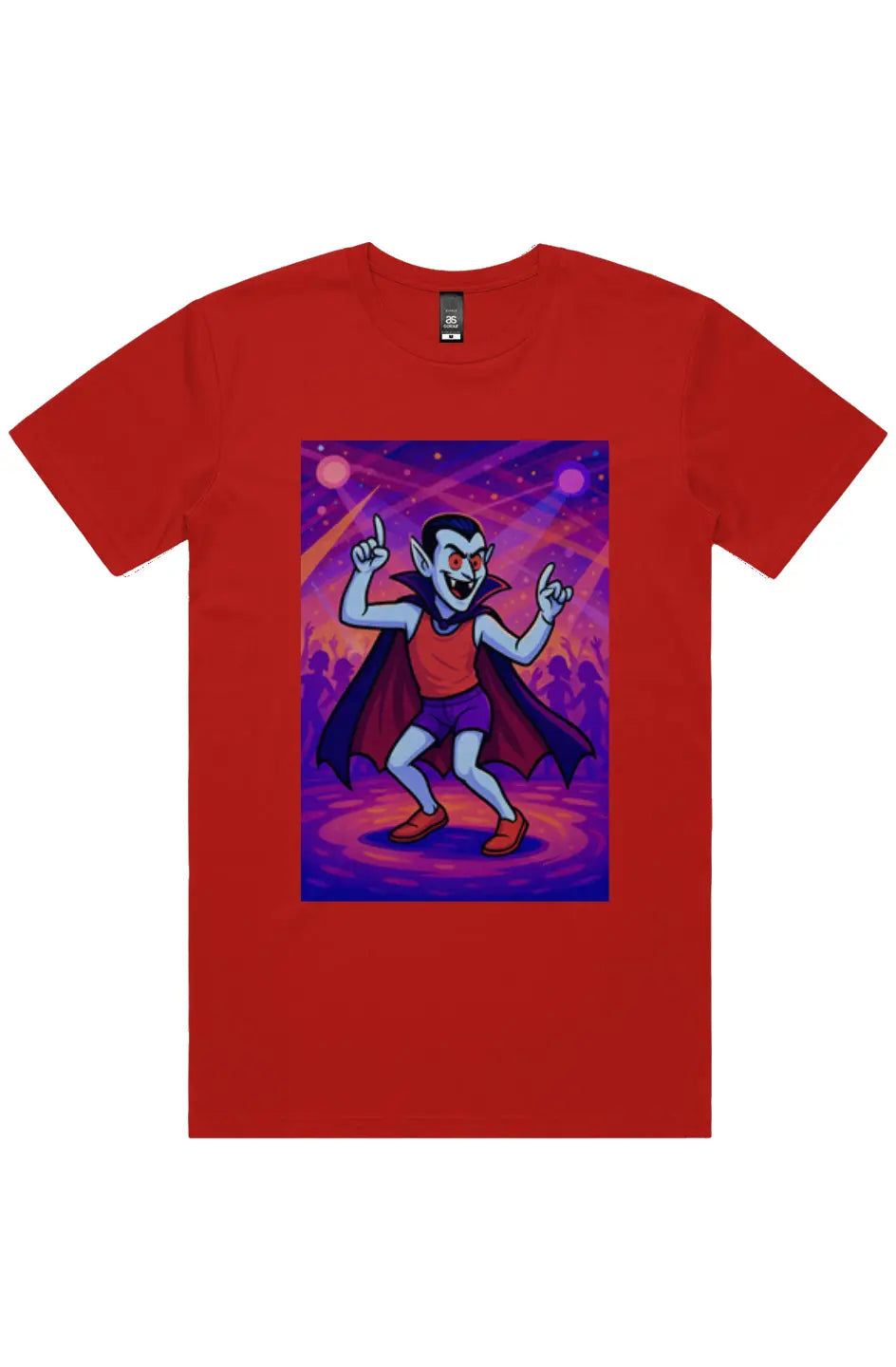 The Circuit Party Dracula Short Sleeve Staple T-Shirt brings the undead to the dancefloor, and honey—he bites back. Rocking a red tank, short shorts and a cape that flows with the beat, this version of Dracula isn’t stalking castles—he’s body rolling under strobes at an undisclosed rooftop in Miami. Immortal. Insatiable. Iconically overdressed and underdressed.
