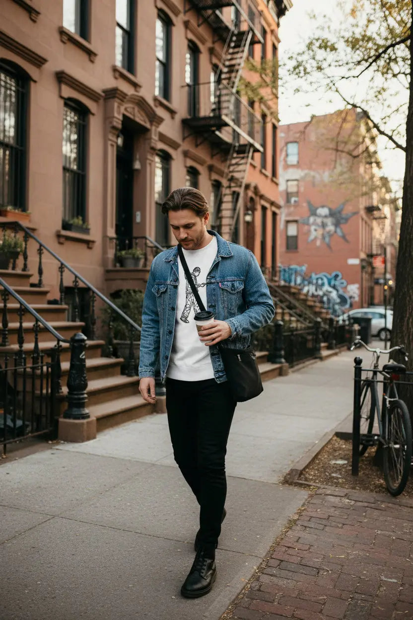 The minimalist outline — a hooded figure rendered in sleek, abstract lines — becomes both symbol and reflection. It’s the city seen through motion and memory, a reminder that sometimes the most powerful designs are the ones that leave room for interpretation.