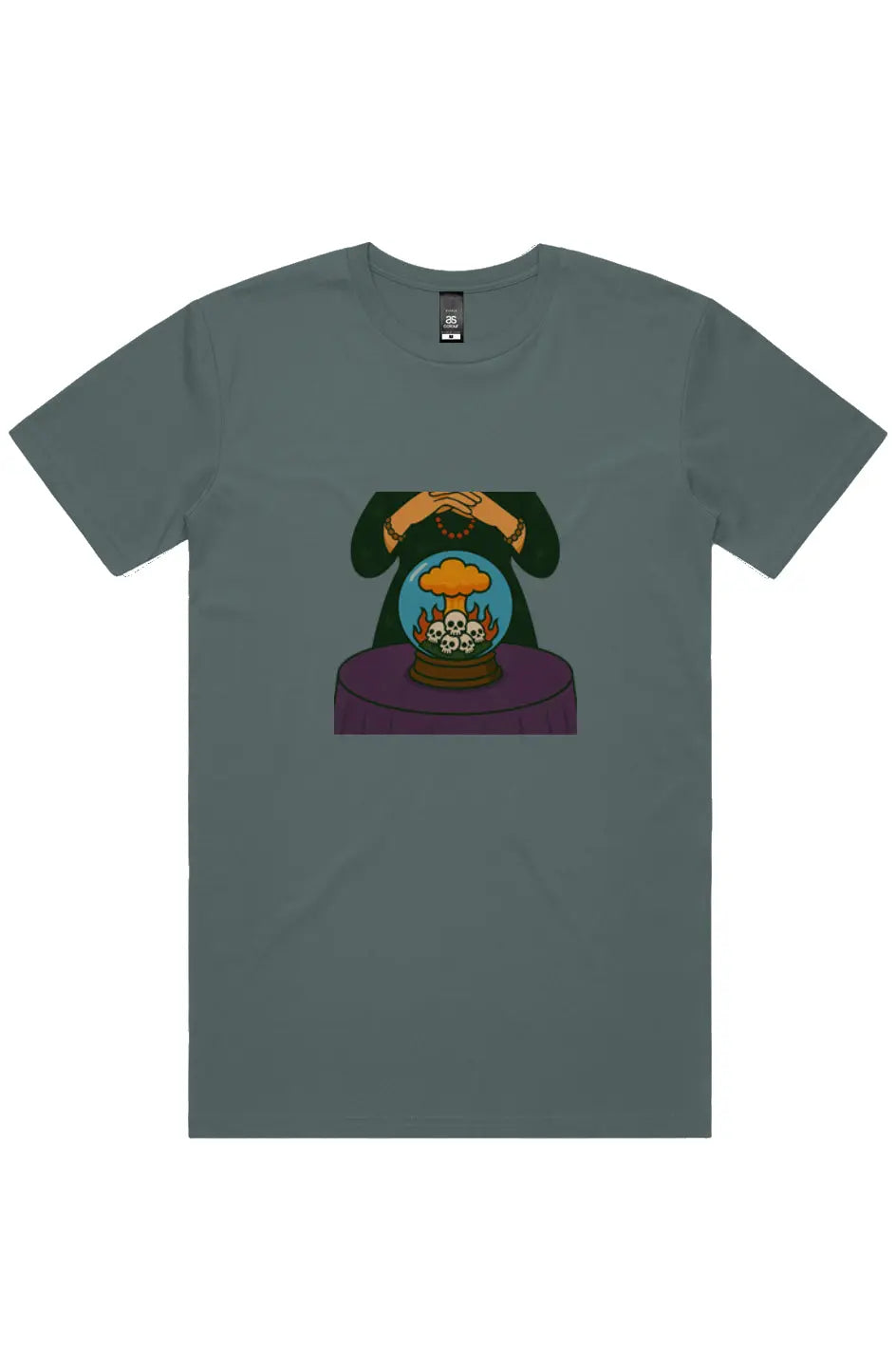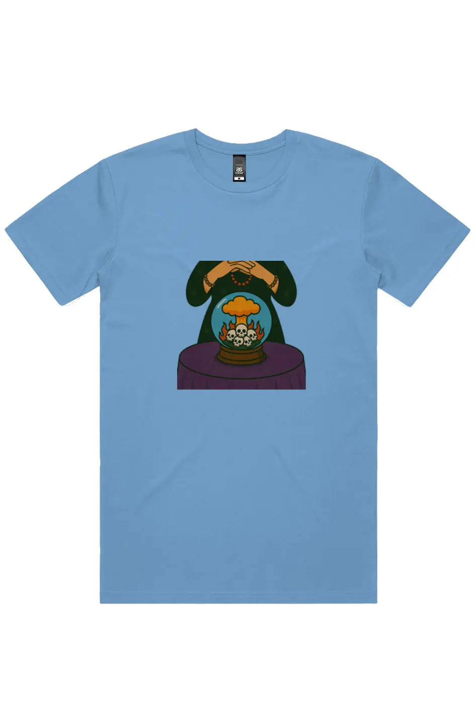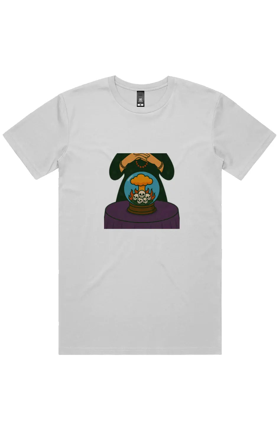 The Dark Future Fortune Teller Short Sleeve Staple T-Shirt doesn’t sugarcoat Earth's destiny—it shatters it. Staring deep into her crystal ball, this mystic queen sees mushroom clouds, skulls, and the collective anxiety of a collapsing world. Spoiler alert: the vibes are not immaculate.