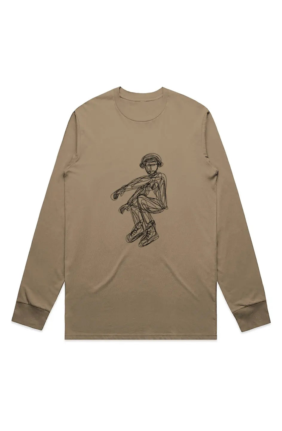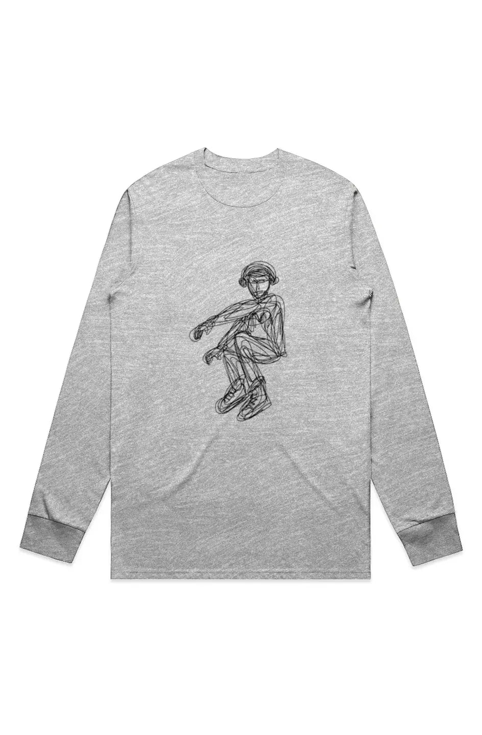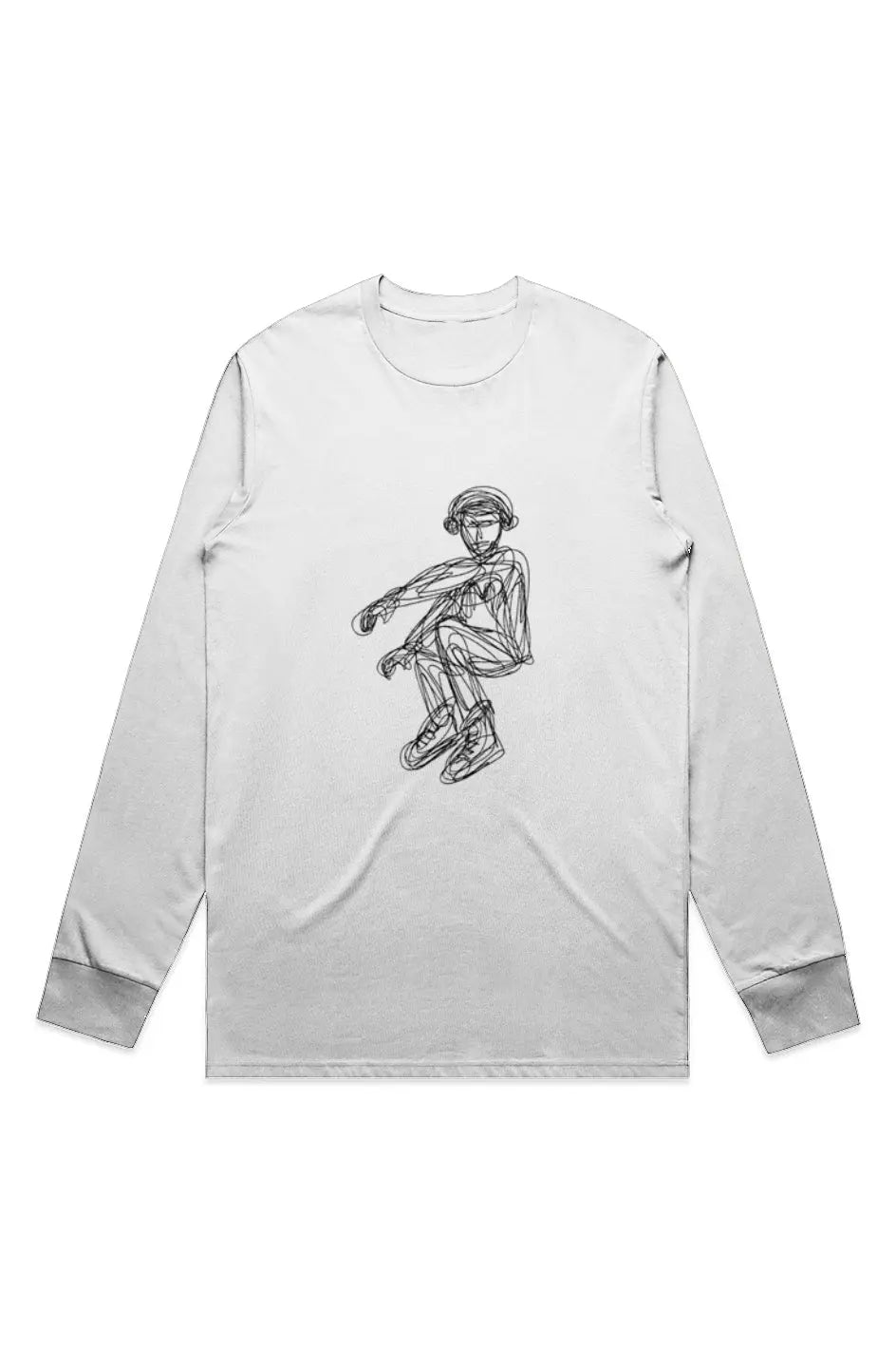 Low Pose in Headphones Scribble Drawing Long Sleeve Staple T-Shirt