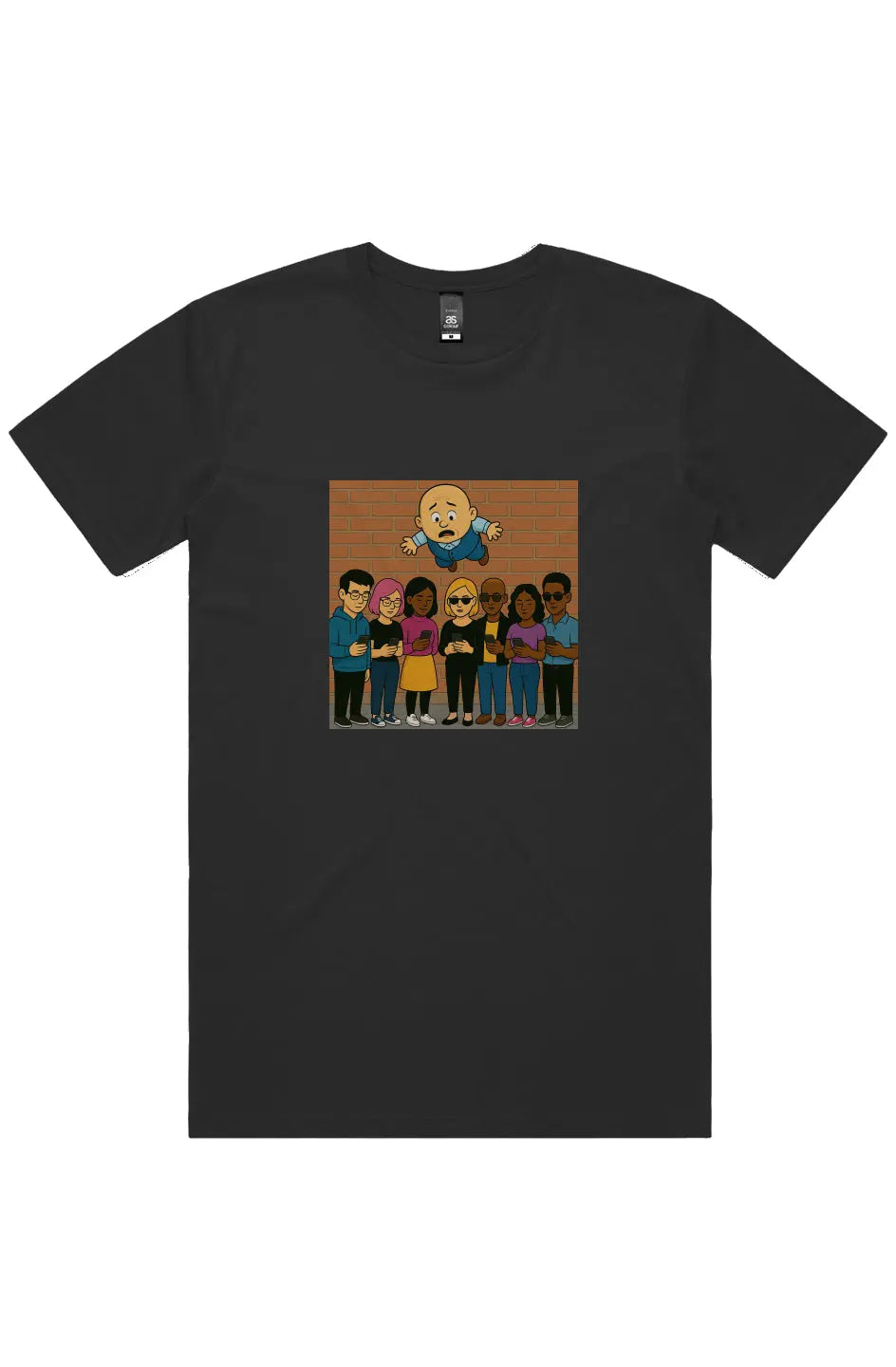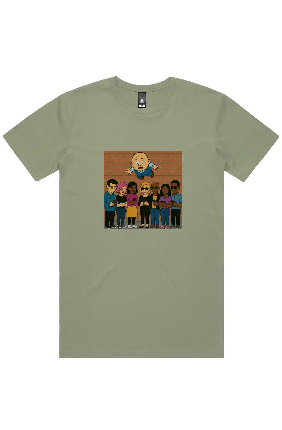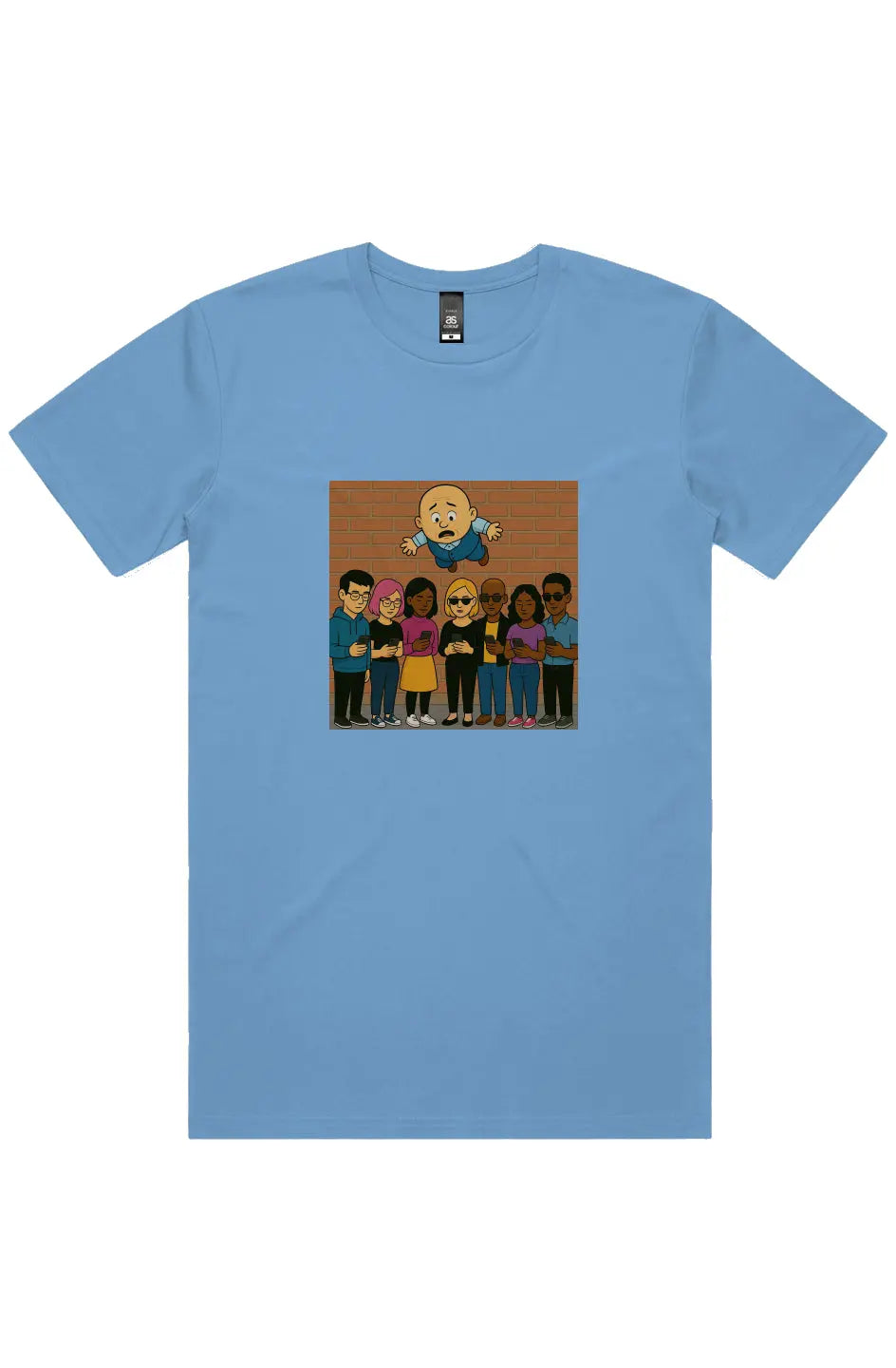 The Notifications On: Proof We’re All Doomed Short Sleeve Staple T-Shirt captures the exact moment Humpty Dumpty falls—and no one cares. Everyone’s too busy scrolling, swiping, or filming vertical content no one asked for. Gen Z, Boomers, doesn’t matter—no one looks up. This isn’t a fairy tale. It’s a cautionary tale dressed in WiFi and willful ignorance.