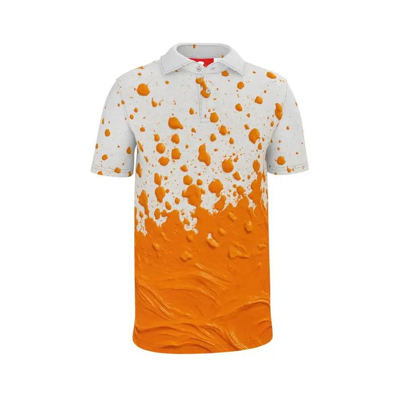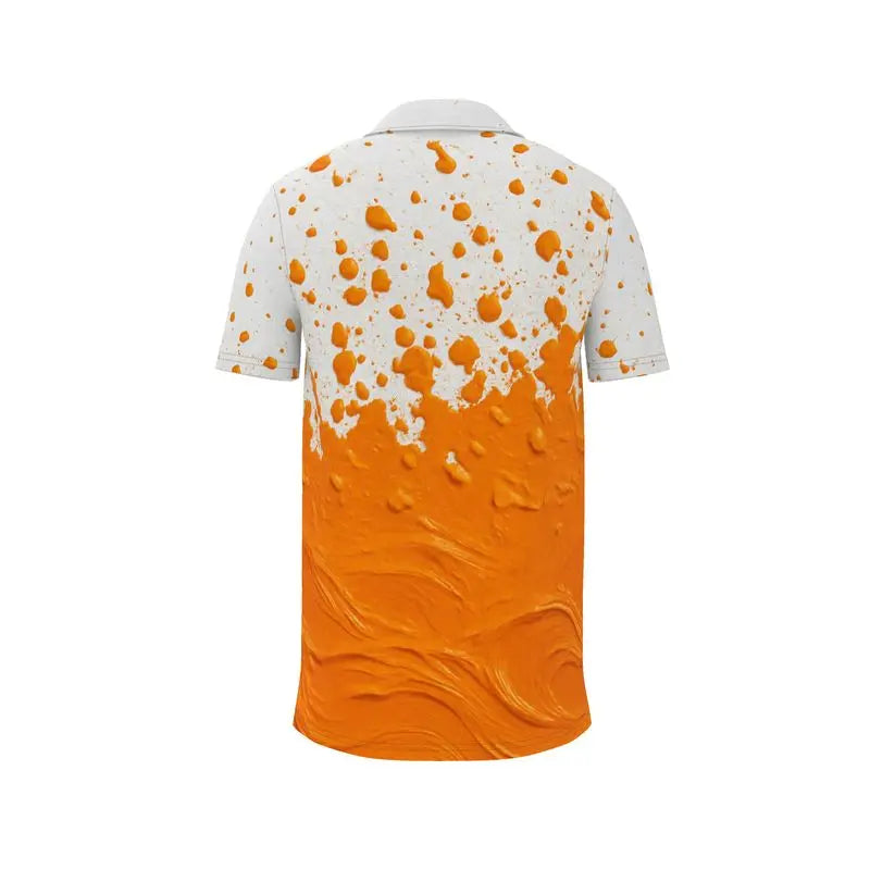 The Orange Splash Premium Polo Shirt captures the moment color erupts into motion. Vibrant orange splashes rise across a crisp white background, creating a bold gradient effect that feels fresh, energetic, and unmistakably modern. The Orange Splash Premium Polo Shirt blends artistic expression with sporty performance, turning a classic polo silhouette into a standout summer statement.
