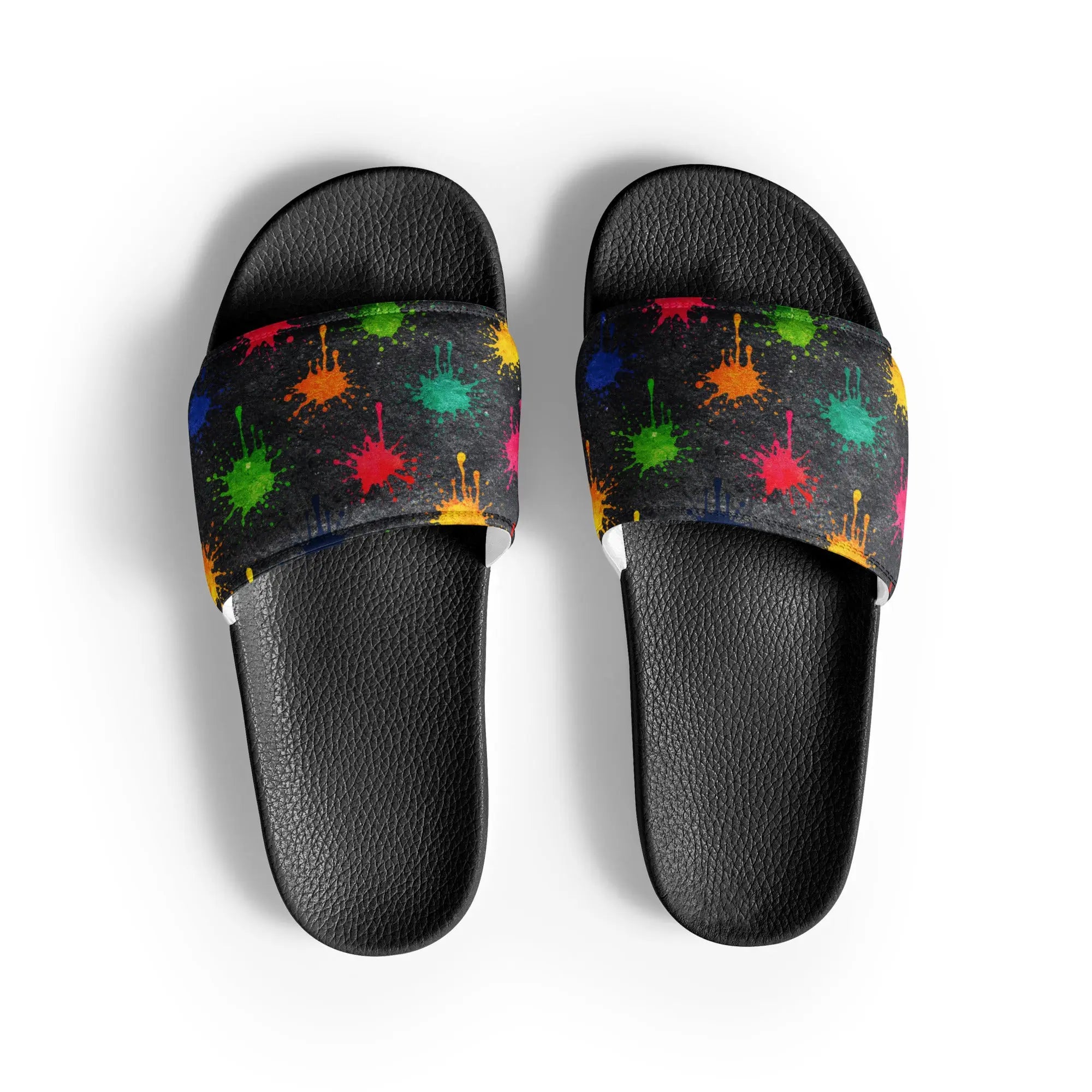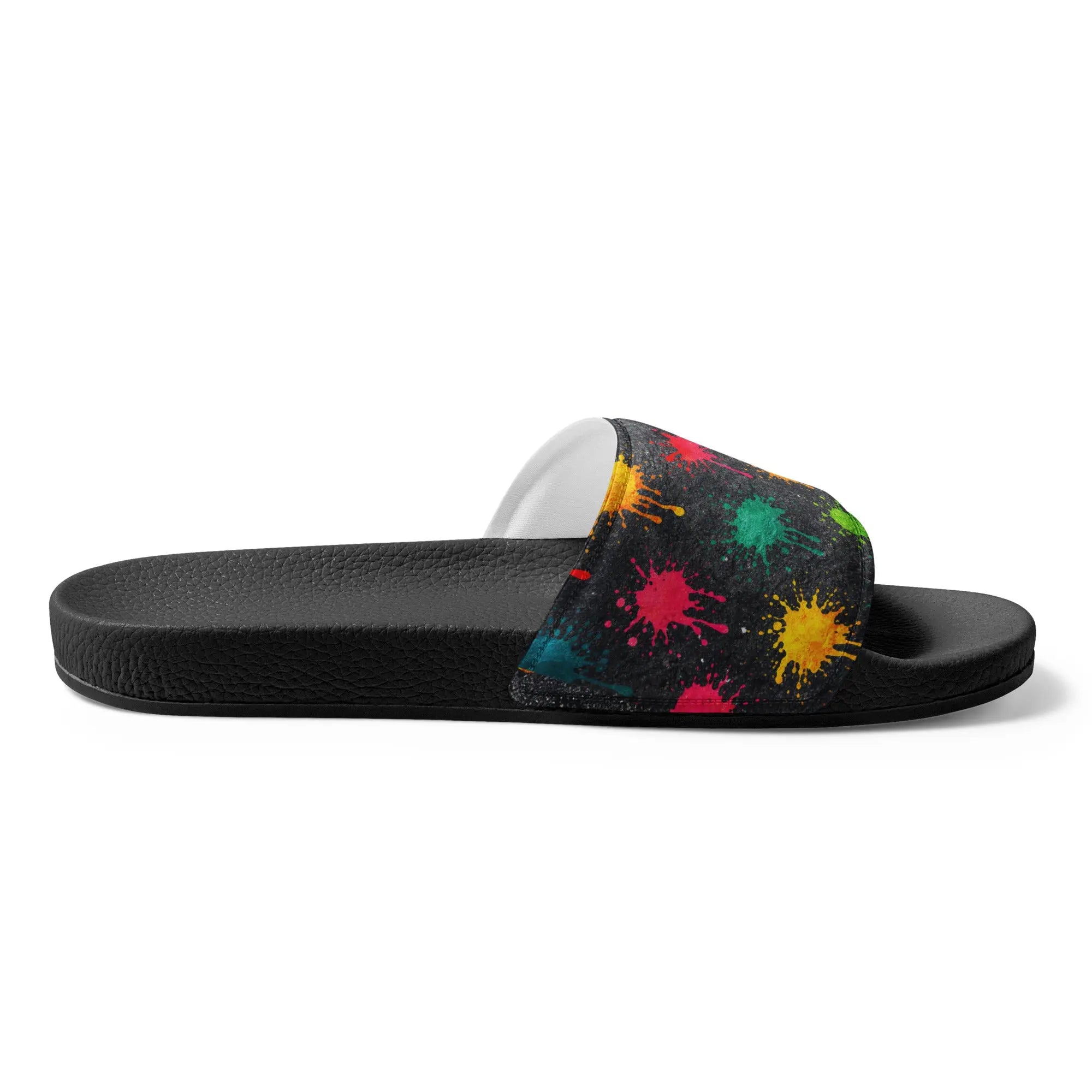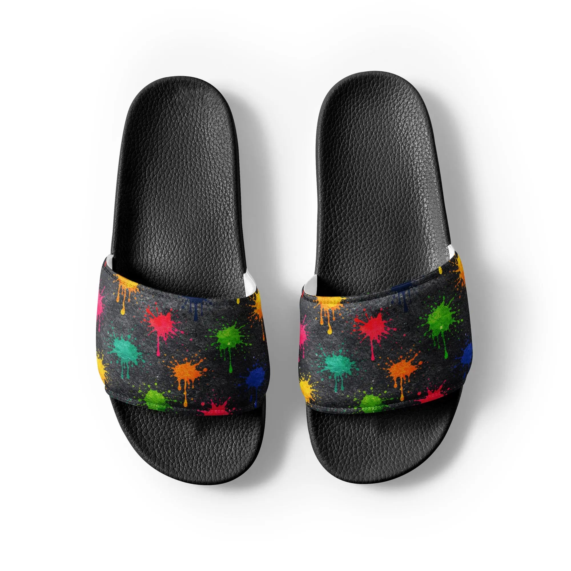 Meet the Paint Riot Men's Slides — wearable chaos for your feet. The Paint Riot Men's Slides take Mikey Yaw’s love of color, street art, and controlled disorder and throw it straight across a sleek black strap. Bright hits of red, green, blue, yellow, and orange explode across the surface, giving these slides a rebellious, artwear vibe that feels equally at home on a Brooklyn sidewalk, a beach boardwalk, or your apartment floor after a long summer day.