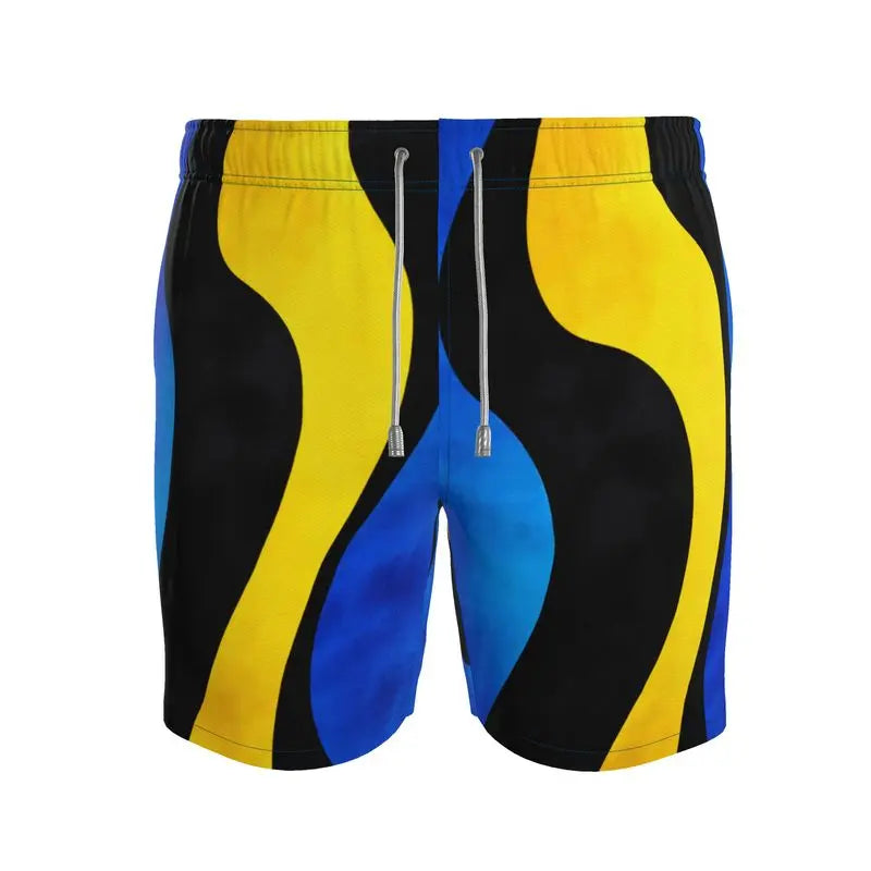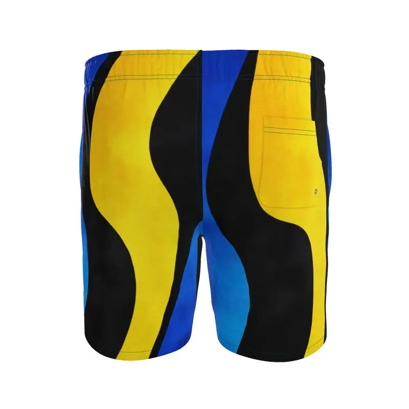 The Reef Flow Premium Swim Trunks channel the energy of tropical waters into bold wearable design. Flowing shapes of deep blue, golden yellow, and black move across the fabric like shifting ocean currents around a coral reef. The Reef Flow Premium Swim Trunks blend vibrant color with smooth abstract motion, creating swimwear that feels as dynamic as the water itself.