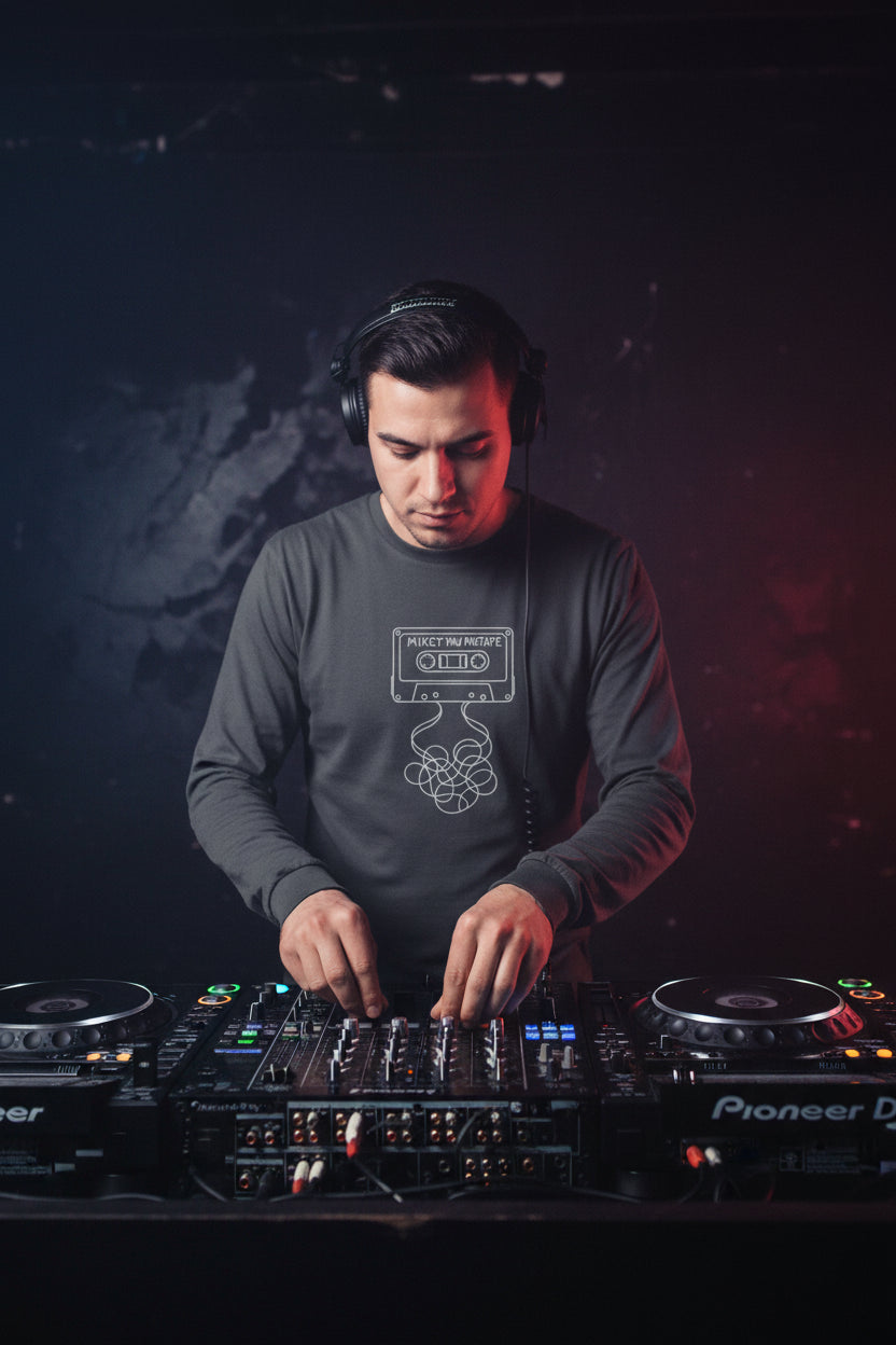 The Mikey Yaw Mixtape Long Sleeve T-Shirt takes you straight back to the days when a blank cassette was the most powerful playlist maker on Earth. The line drawing shows a tape scrawled with “Mikey Yaw” and the ribbon unraveling in glorious chaos — just like every mixtape that lived in your backpack or car stereo until it got chewed up. It’s a nod to the art of recording over and over, pressing play and rewind until the tape stretched thin, and how those songs stitched together moments in time. Pure analog imperfection. Pure style.