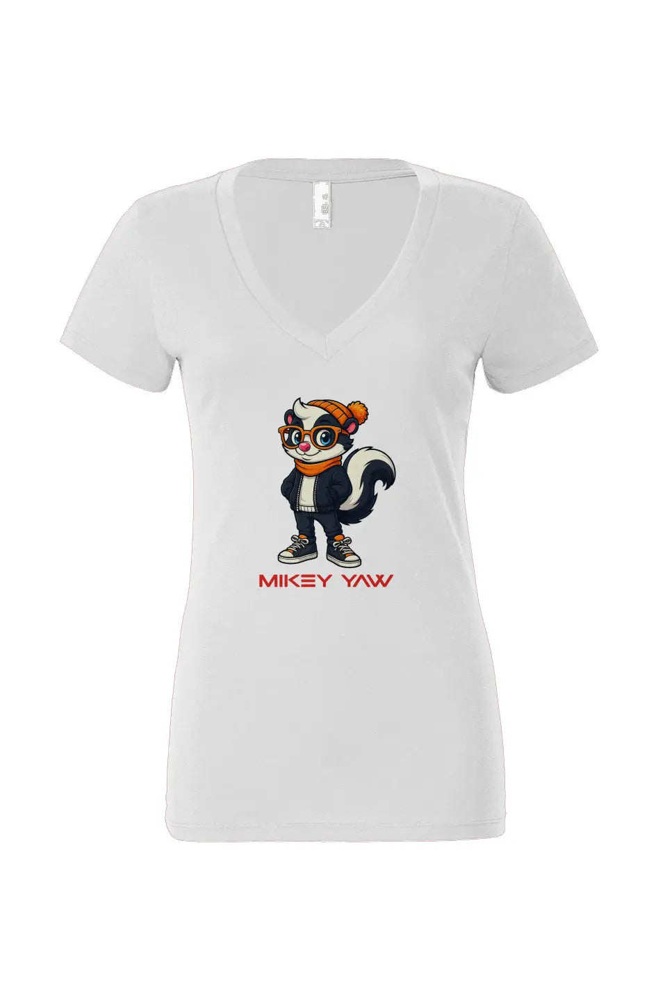 The Stinkin Cool Women’s Jersey Deep V-Neck T-Shirt proves that even a skunk can have swagger. Featuring a cartoon skunk with effortless attitude, this design blends playful humor with streetwear edge. It’s bold, quirky, and a little rebellious — just the way Mikey Yaw likes it. Because cool doesn’t always come in the usual package, sometimes it’s got stripes and a tail.