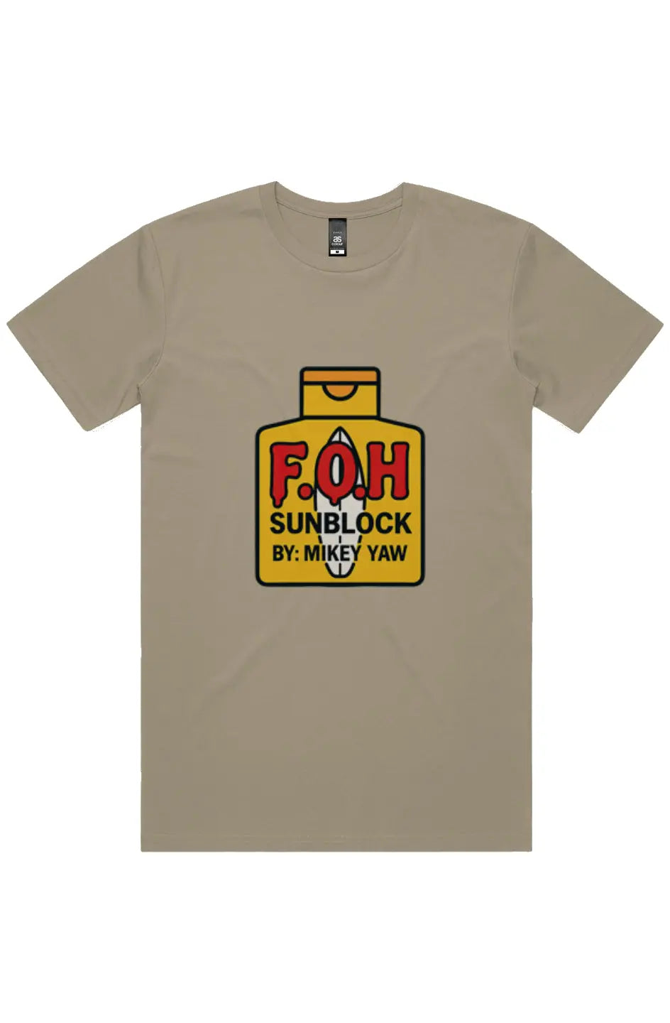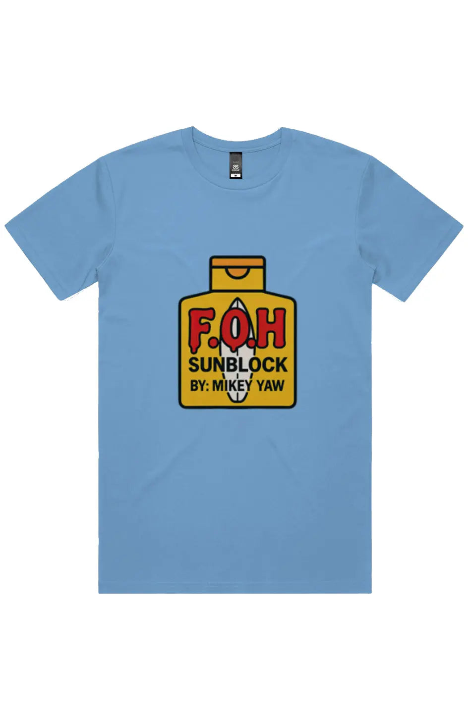 The F.O.H Sunblock Short Sleeve Staple T-Shirt isn’t for people who “love the heat.” It’s for the ones who are over it—the sweat, the burn, the unsolicited UV assault. This tee gives the sun the finger (politely, via typography) and tells it to F.O.H with that burning sh*t. Inspired by vintage sunblock labels and your sunburn trauma, this shirt brings the bold summer sarcasm.