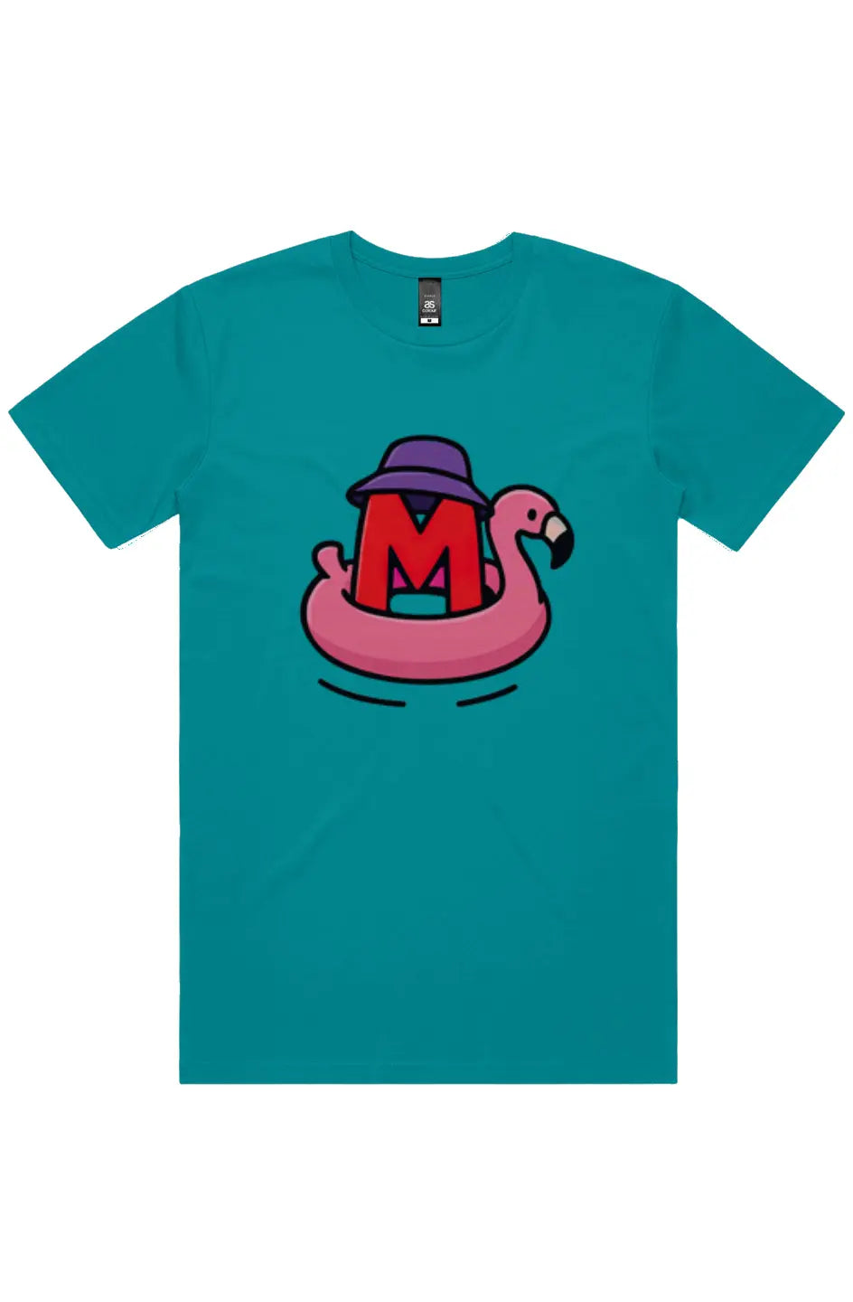 The Inflatable Pink Flamingo Short Sleeve Staple T-Shirt is pure summertime absurdity—in the best possible way. Featuring a bold graphic of an oversized pink pool float with serious attitude and a little Mikey Yaw “M” tag, this tee doesn’t just float—it flexes. It’s for the one at the pool party who showed up fashionably late and still stole the show.
